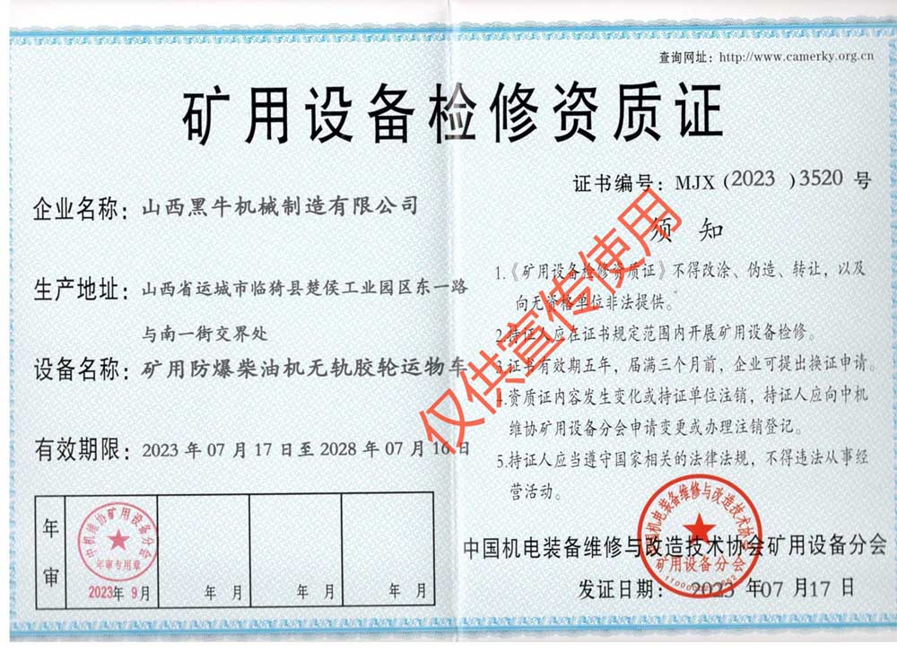 資質(zhì)證書(shū) >檢修資質(zhì)>礦用設(shè)備檢修資質(zhì)證