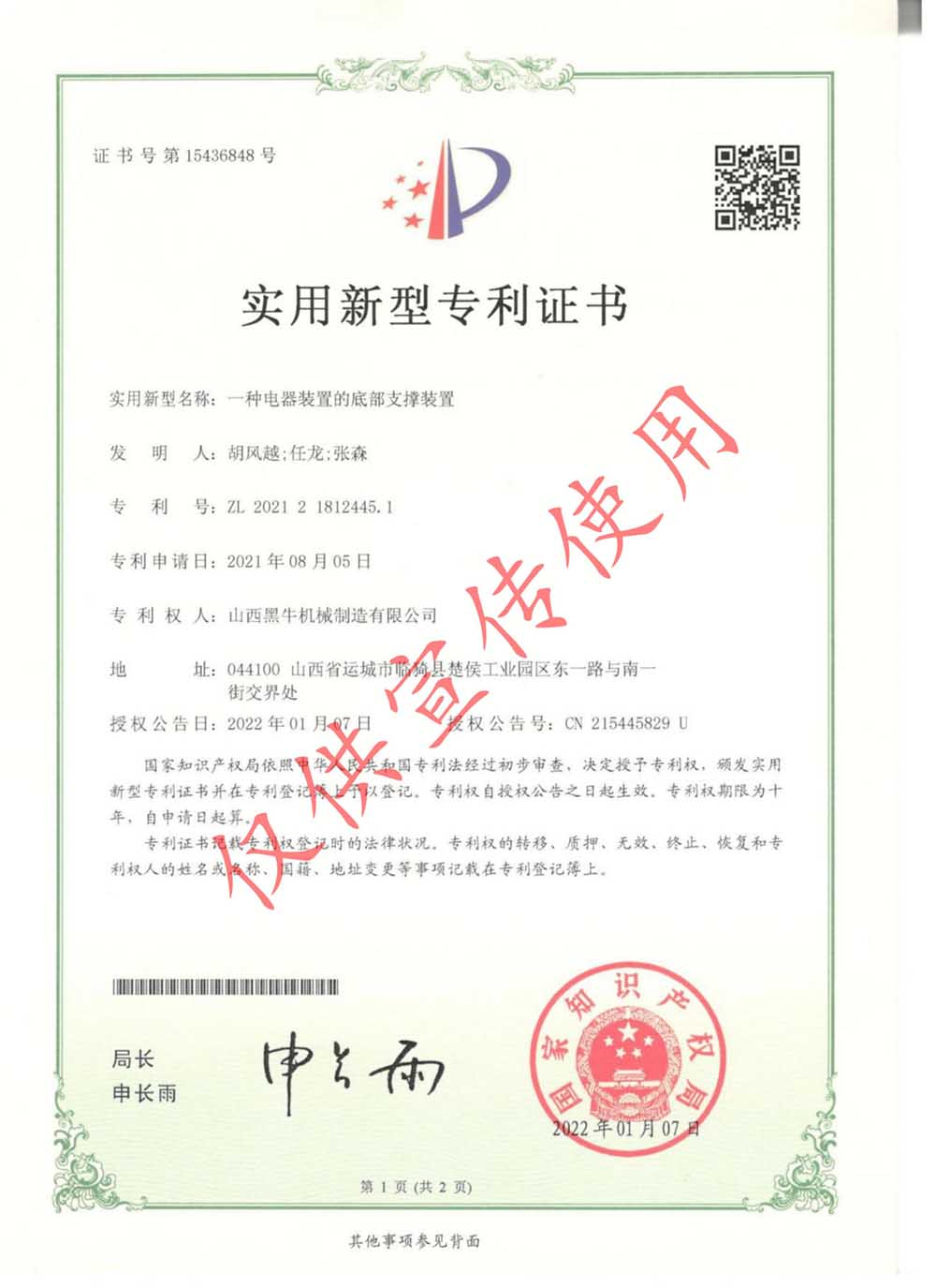 實(shí)用型專(zhuān)利證書(shū)